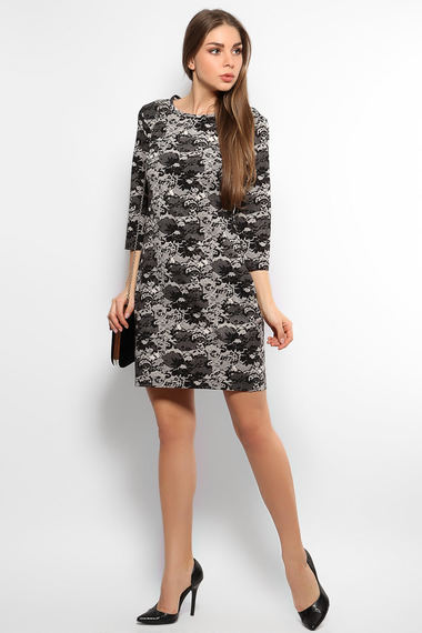 Повседневное платье из плотного хлопкового трикотажа. Модель средней длины, с рукавами 3/4 и округлой горловиной.
