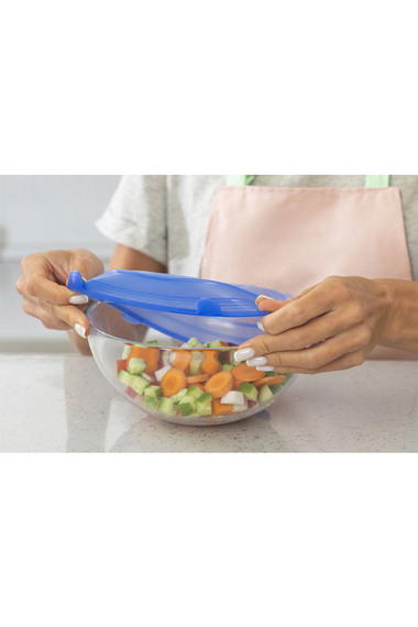 Не можете найти подходящую крышку? Используете неудобную одноразовую пленку? Кастрюля с объемной крышкой не помещается в холодильник? Нарезанный арбуз заветривается, а начатый лимон высыхает? Много задач – одно решение! Растягивающиеся силиконовые крышки решат все проблемы хранения продуктов! Просто натяните подходящую по размеру крышку на нужную поверхность. Крышки растягиваются в 3 раза, плотно прилегают к поверхности, создавая «вакуум».